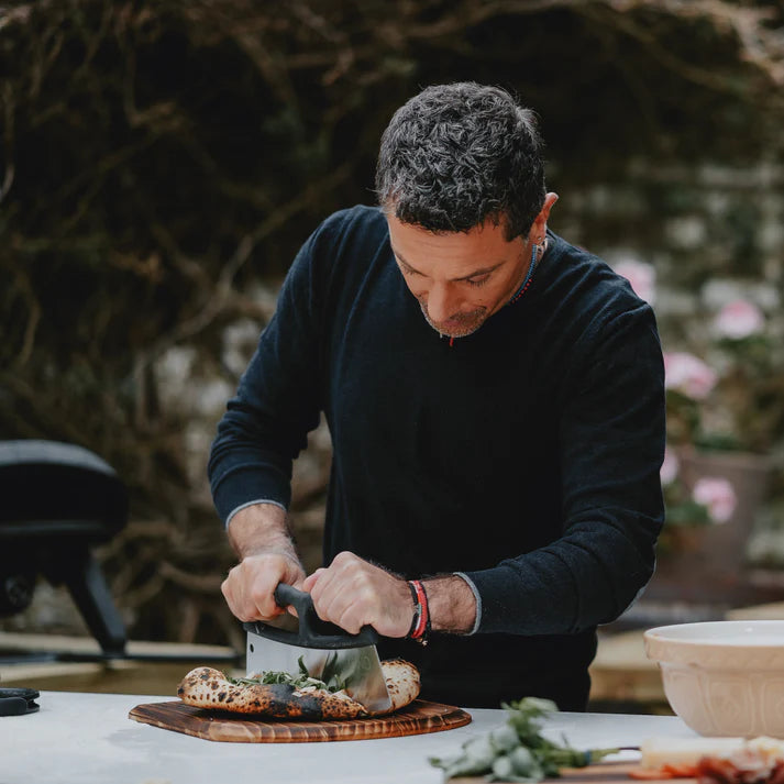 חותך פיצה עם ידיות אחיזה בצורת קשת